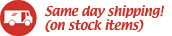 Same day shipping on stock items for orders received before Noon E.T. Other orders will be processed and shipped within 24 hrs. Our website will automatically confirm your order and tracking number by e-mail.